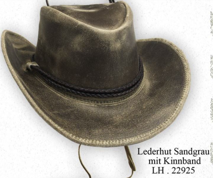 Cowboyhut LH 22925: Lederhut in sandgrau mit Kinnband von Running Bear