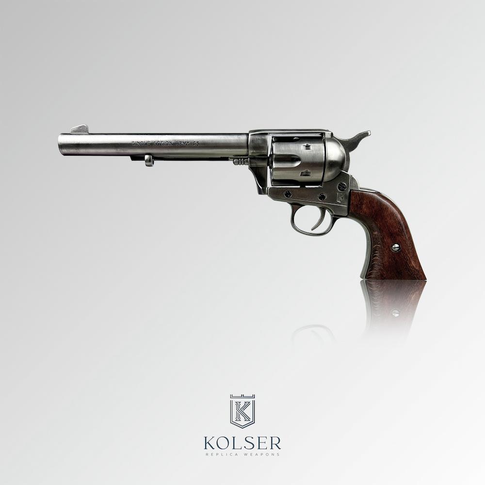 Colt-Revolver .45, US-Kavallerie 1873, Poliertes Nickel-Finish & Holz, Replik