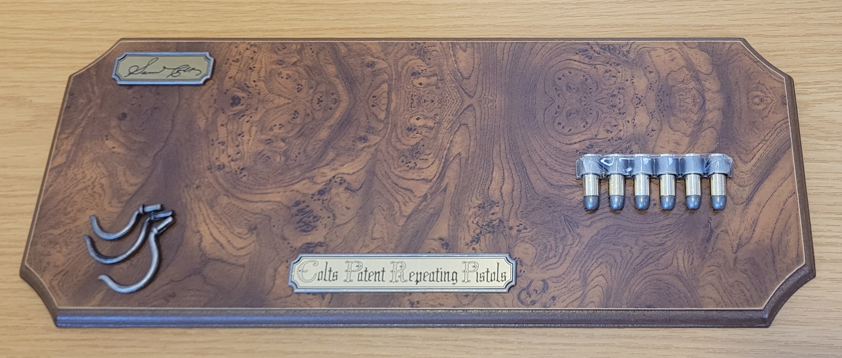 - Plakette mit nachgemachter Unterschrift von Samuel Colt (Gründer der Colt Manufacturing Company)
