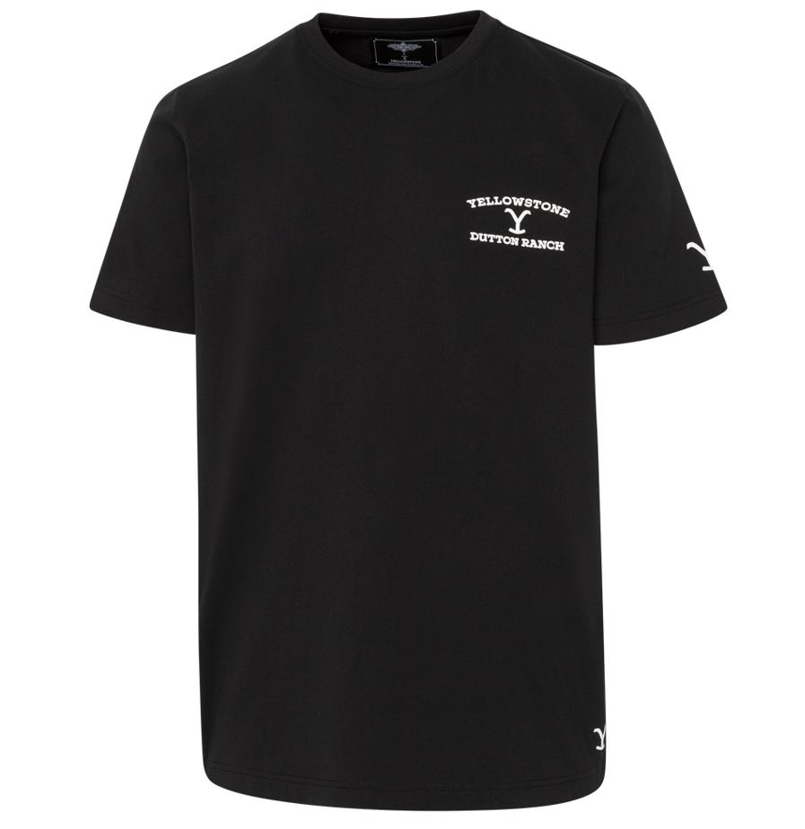 Unisex T-Shirt mit Rundhalsausschnitt in hochwertiger Baumwollqualität. Veredelt mit einem dezenten Yellowstone-Logo-Print auf Brust und Ärmel sowie einem markanten Premium-Backprint auf dem Rücken. Ein stilvoller und zugleich lässiger Teil der aktuellen Yellowstone-Kollektion vielseitig kombinierbar und ein echtes Must-have für jeden Kleiderschrank. Nicht nur für Fans der Dutton Family, sondern für alle, die authentischen Western-Style mit modernem Anspruch lieben.
