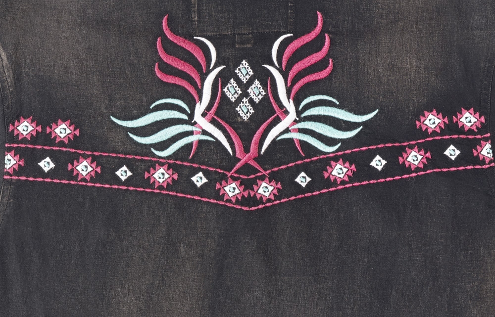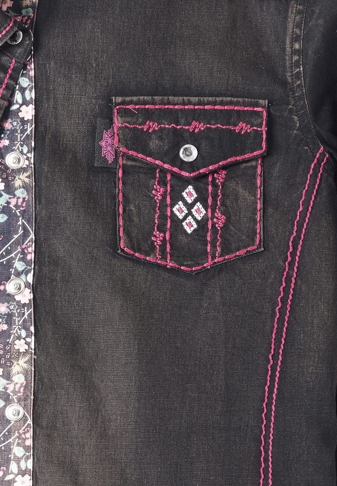 Westernbluse Hope von StarsandStripes: Westernbluse mit leichter Waschung, effektvollen Stickereien, Ziernähten, funkelnden Druckknöpfen mit Blümchenbesatz an Knopfleiste und Halsausschnitt.