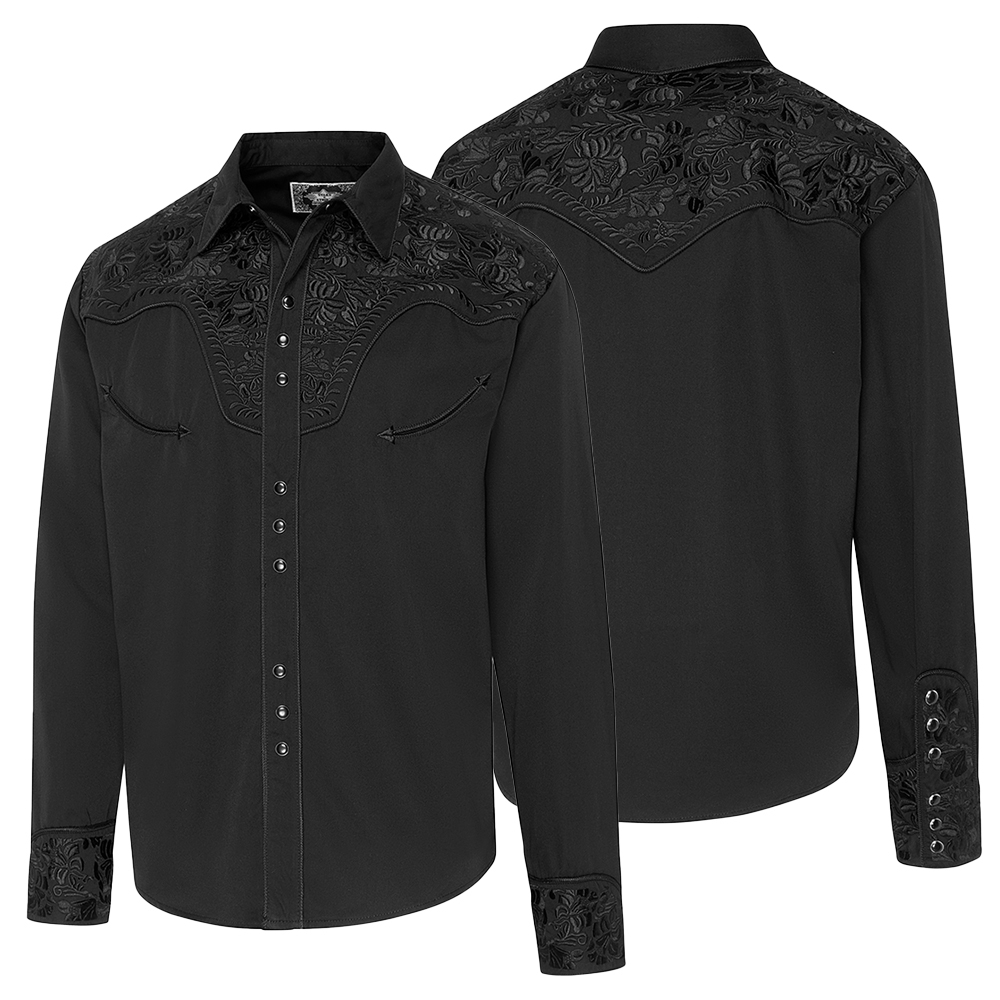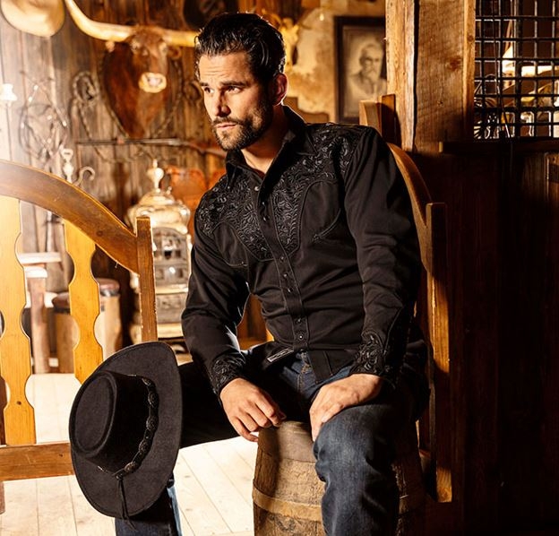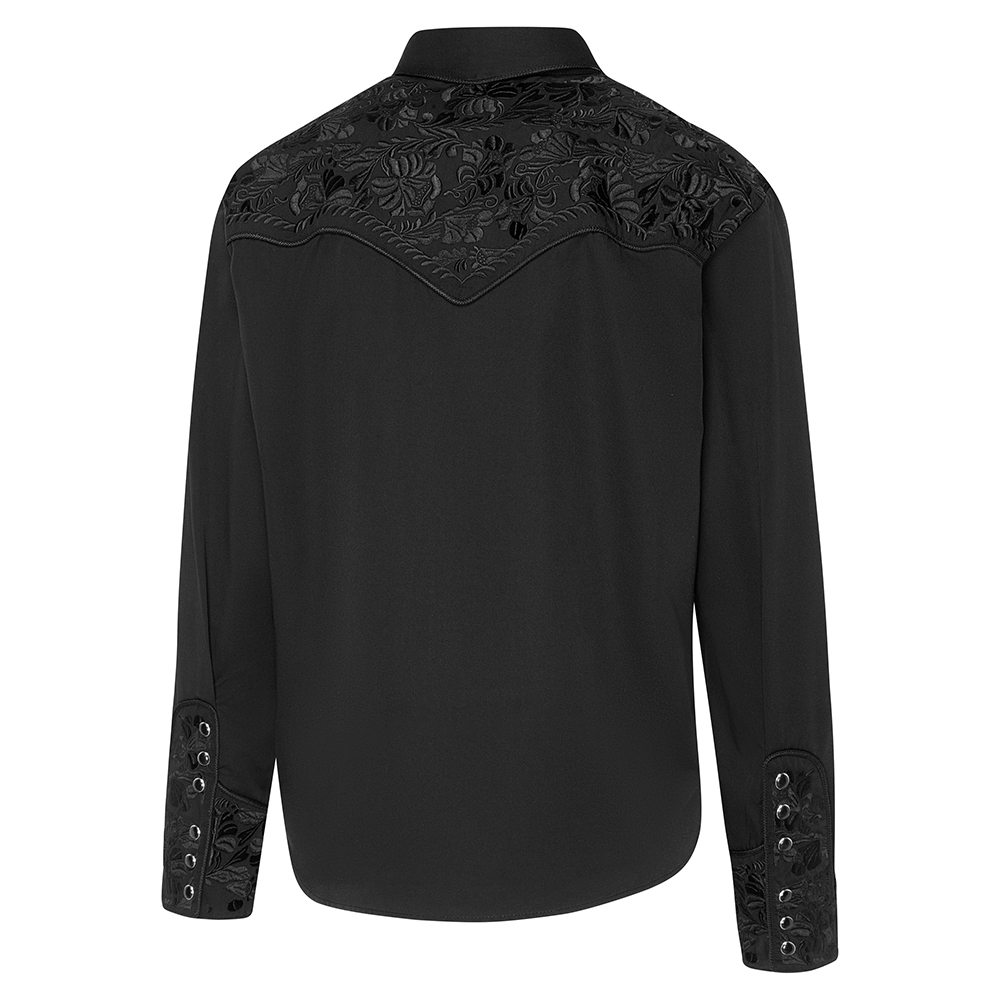 Hemd Brody: Exquisites schwarzes Westernhemd mit Westernpasse. Großartige Stickerei