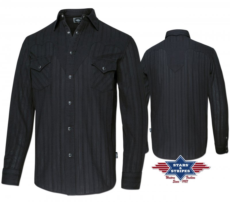 Cowboyhemd Robin schwarz: Jacquardhemd mit dezenter Western-Passe, aufgesetzten Brusttaschen und Druckknöpfen.