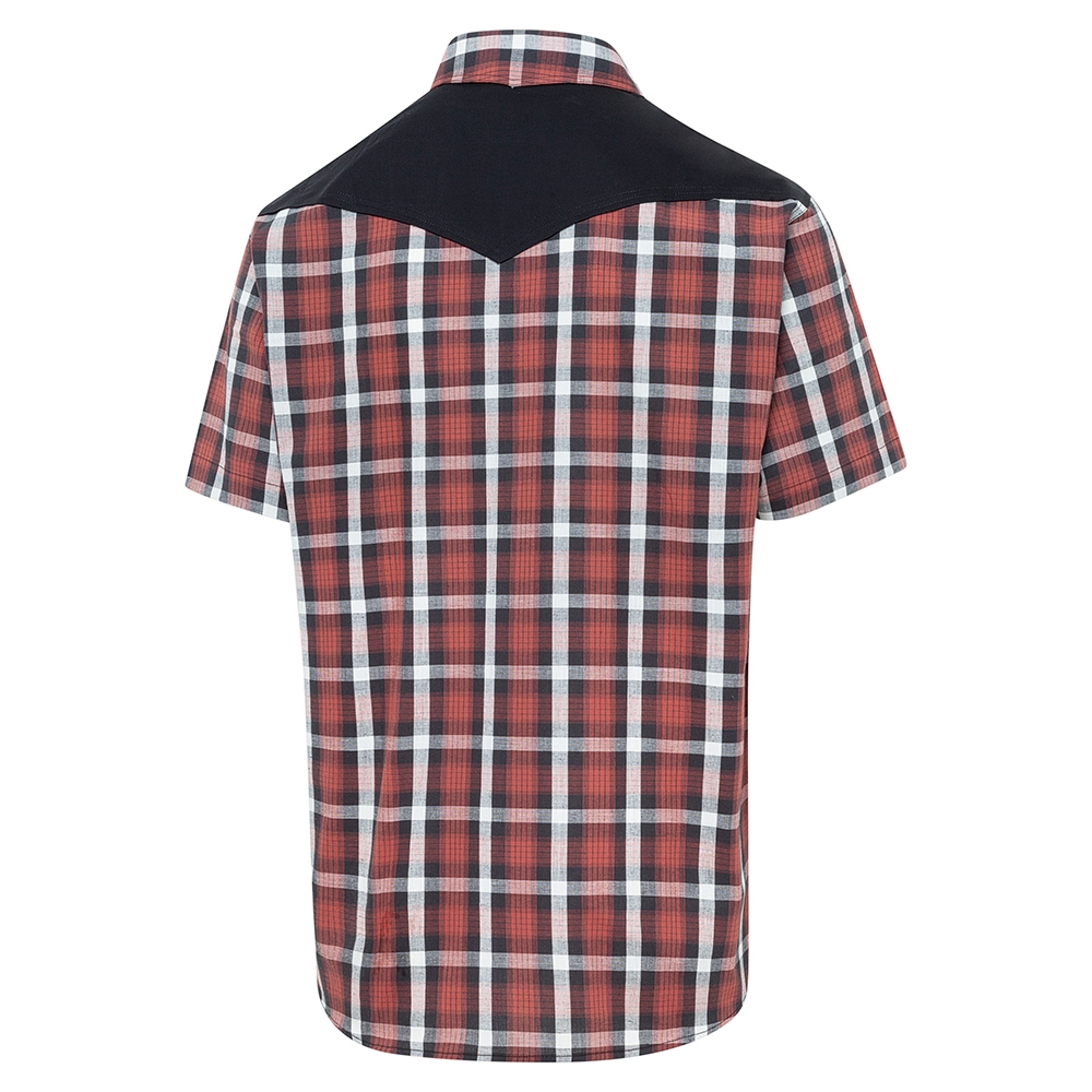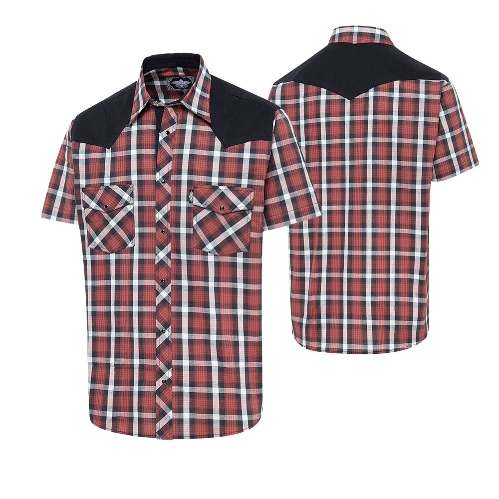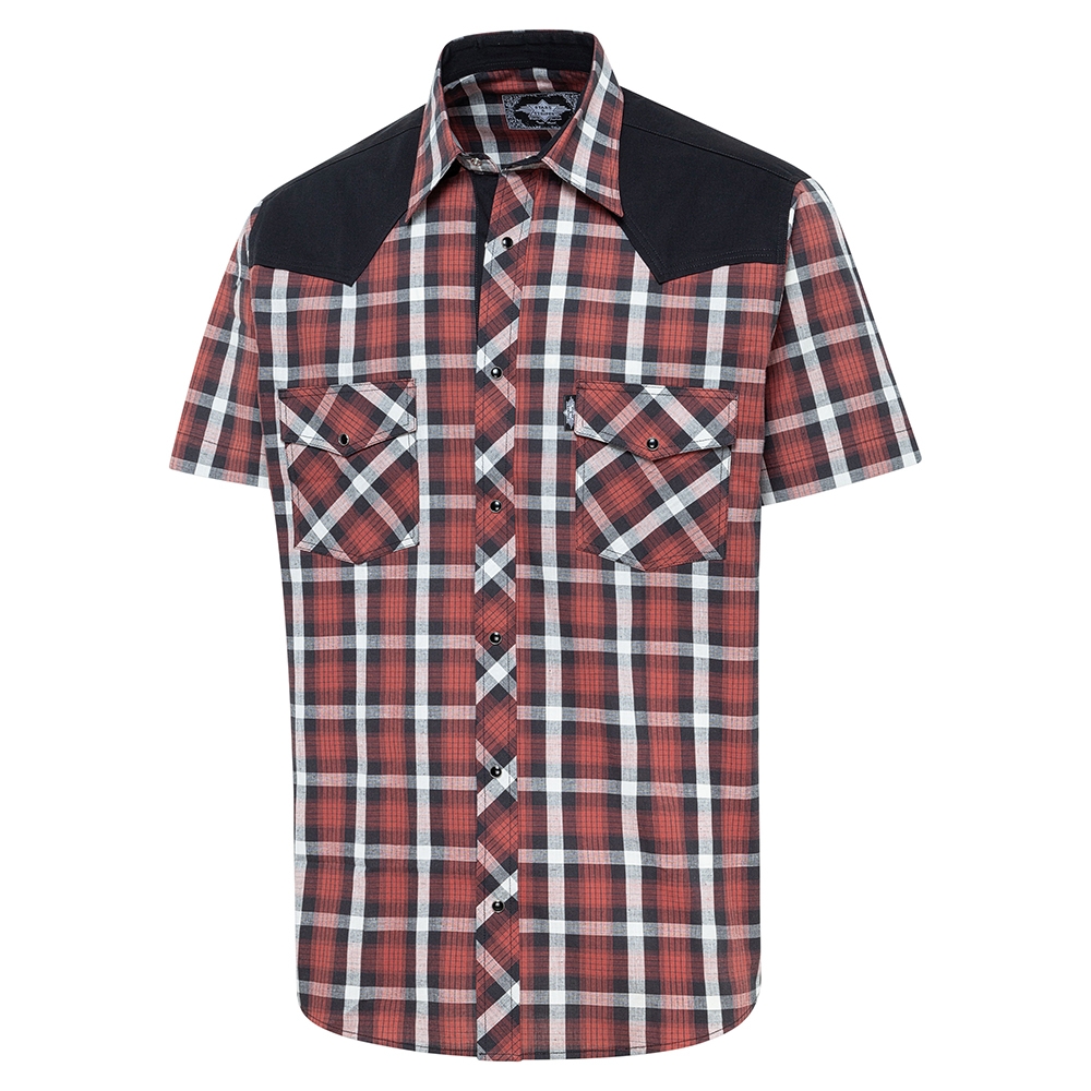 Cowboyhemd Y-07: Kariertes Kurzarm-Westernhemd mit farblich abgesetzter